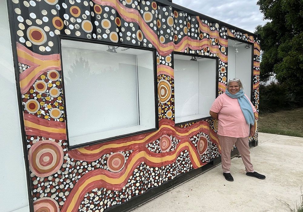 Now known as the ArtBox@BNC, this facility will house all manner of creative processes and artistic goings on. Deidre Burgoyne Rosier is an Indigenous artist who painted the stunning work on the ArtBox exterior and surrounding poles, with the assistance of local Indigenous students from Phoenix P-12 Community College. Their work gives the entrance area of BNC a welcoming and very distinct look.