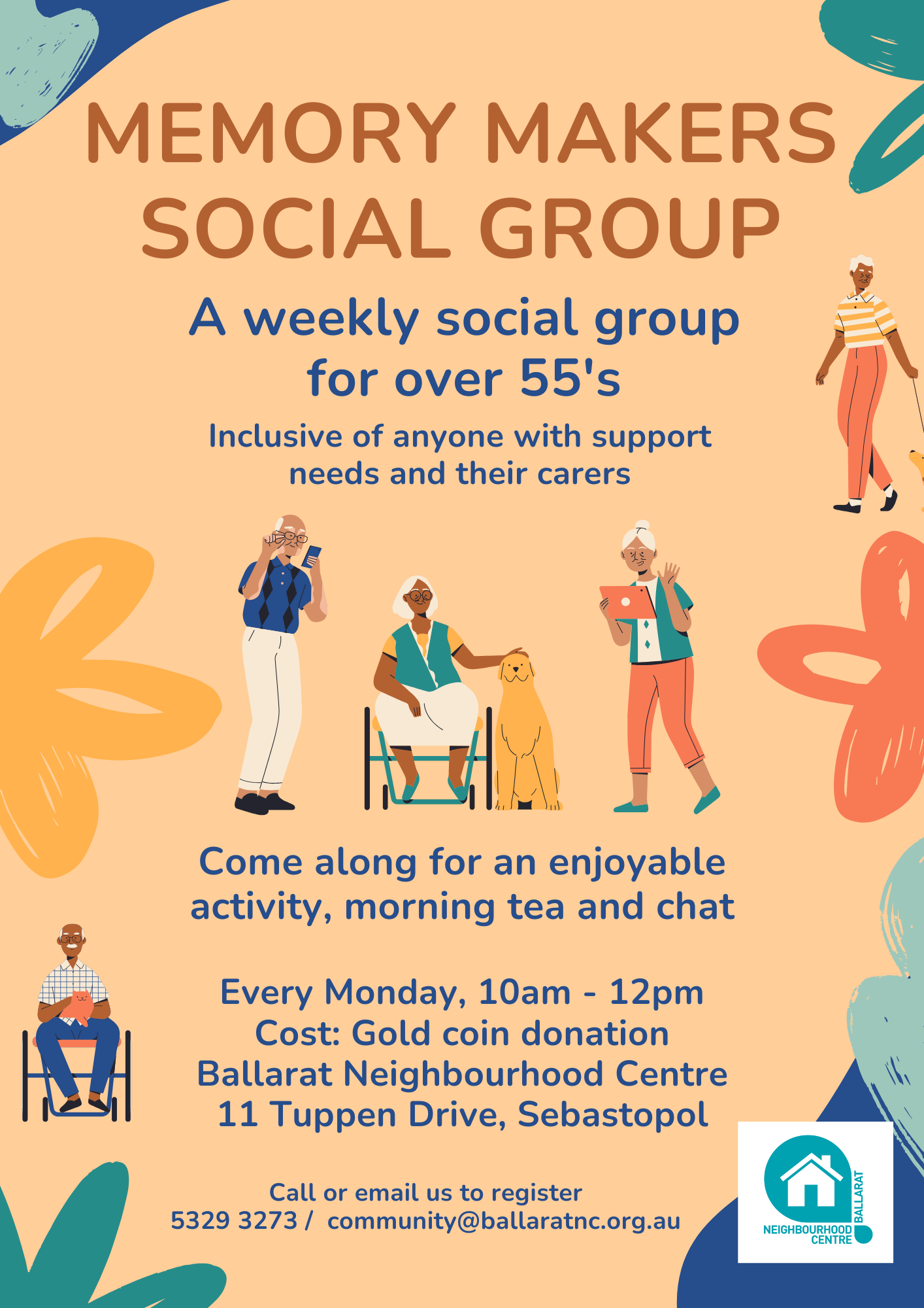 With funding from Dementia Australia in 2024 /2025, Ballarat Neighbourhood Centre worked in collaboration with City of Ballarat Ageing Well Services, and Bigger Hearts Dementia Alliance BallaratGrampians Health – Eyres House, and other local groups to run a series of activities for people living with dementia and their families and carers. Working together, we developed and delivered a campaign aimed at encouraging local organisations and businesses to become more dementia friendly.