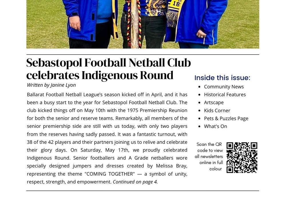 At the recent Community Newspaper Association of Victoria (CNAV) Annual Conference and Awards, Connecting Sebastopol Community News was awarded ‘Best Sports Reporting’ for an article from the Sebastopol Football Netball Club in our June issue. Written by and photos supplied by Janine Lyon from the club, the judges' comments are below and the winning article is attached.